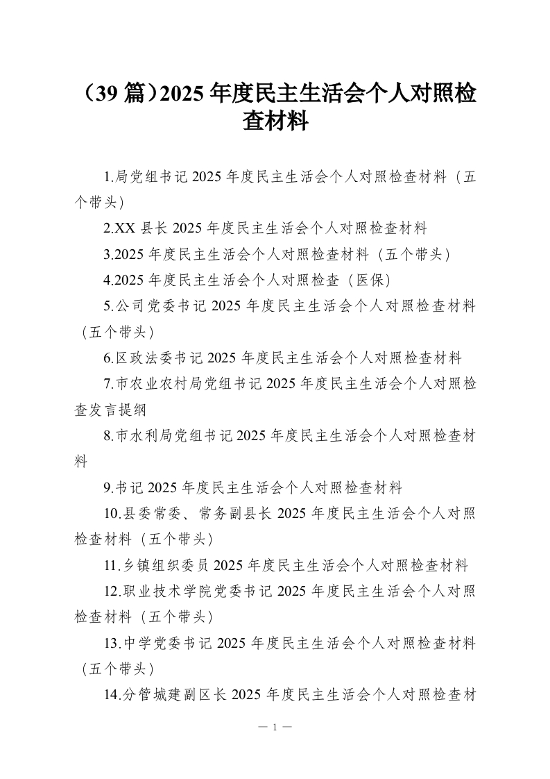 首页讲课讲稿(39篇)2025年度民主生活会个人对照检查材料