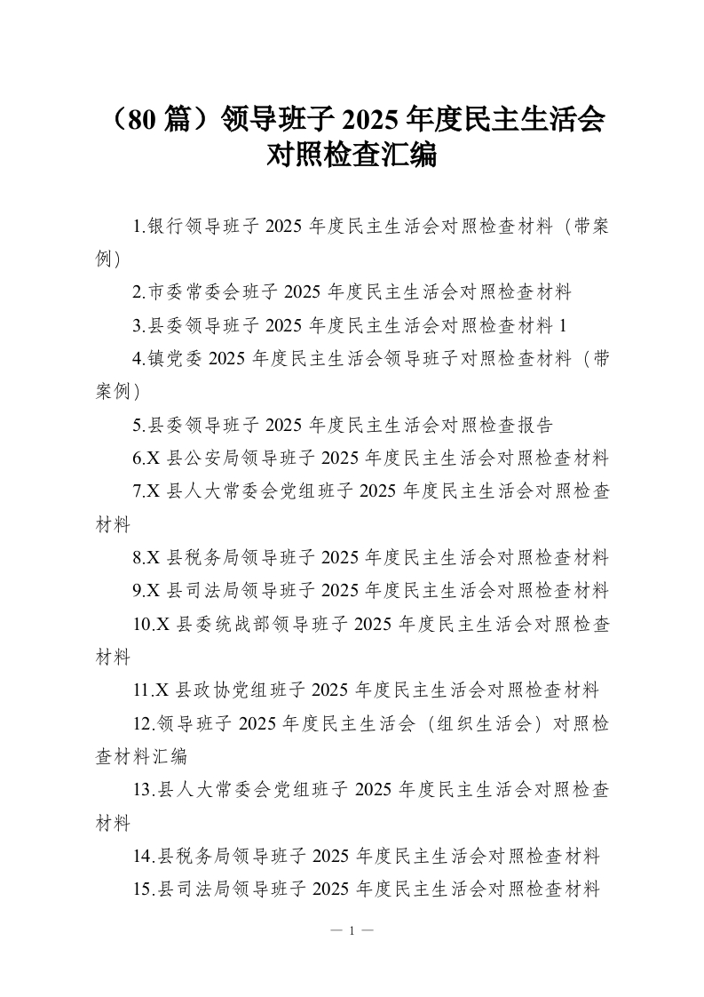 (80篇)领导班子2025年度民主生活会对照检查汇编
