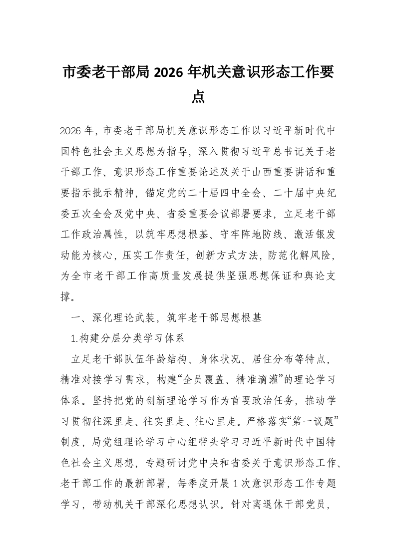 首页学习提升市委老干部局2026年机关意识形态工作要点
