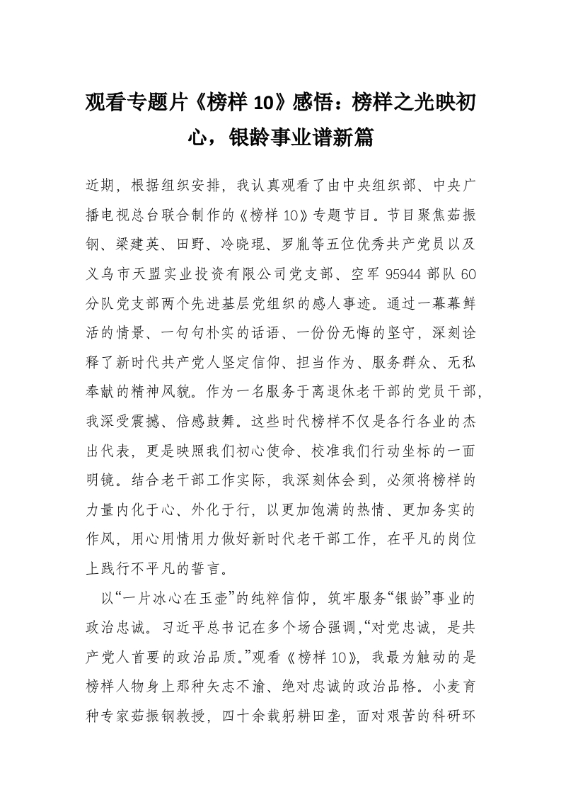 观看专题片《榜样10》感悟:榜样之光映初心,银龄事业谱新篇