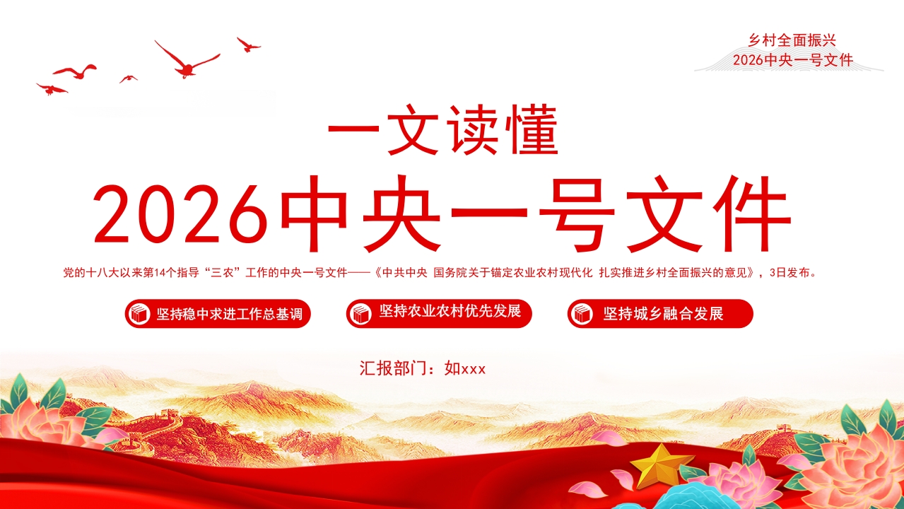 首页PPT模板一文读懂2026年中央一号文件PPT关于锚定农业农村现代化+扎实推进乡村全面振兴的意见课件
