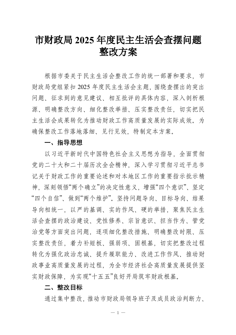 首页精选范文市财政局2025年度民主生活会查摆问题整改方案