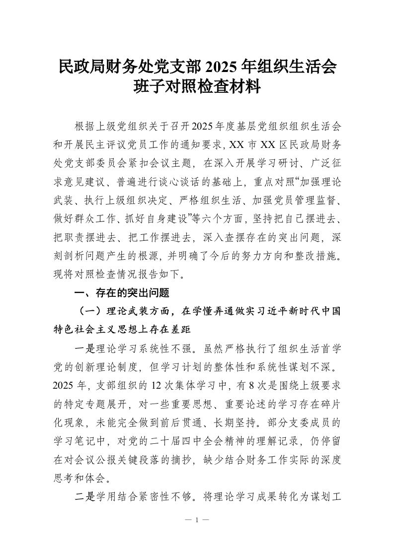 首页精选范文民政局财务处党支部2025年组织生活会班子对照检查材料