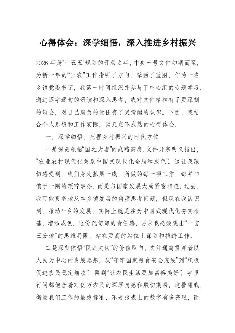 心得体会:深学细悟,深入推进乡村振兴
