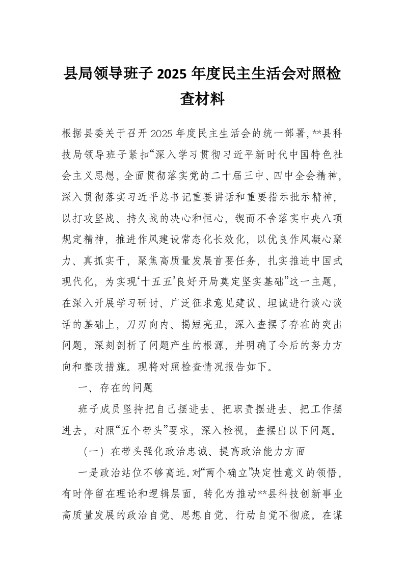 首页讲课讲稿县局领导班子2025年度民主生活会对照检查材料