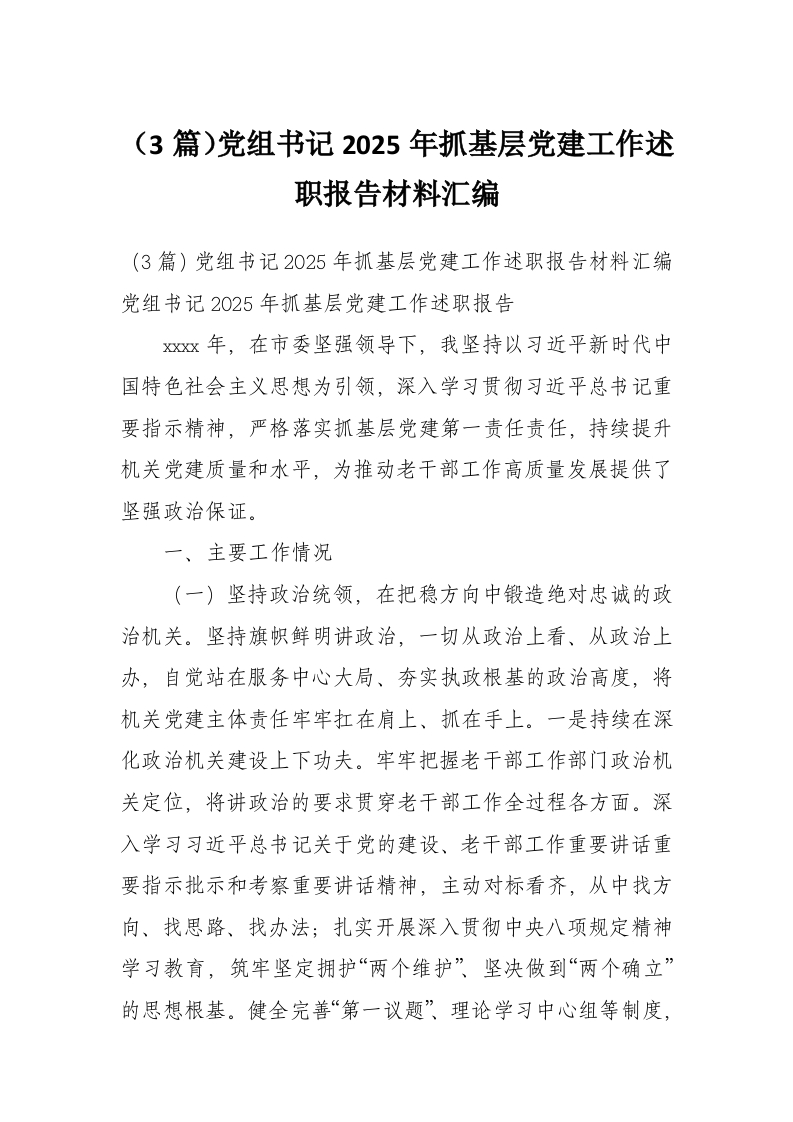 (3篇)党组书记2025年抓基层党建工作述职报告材料汇编