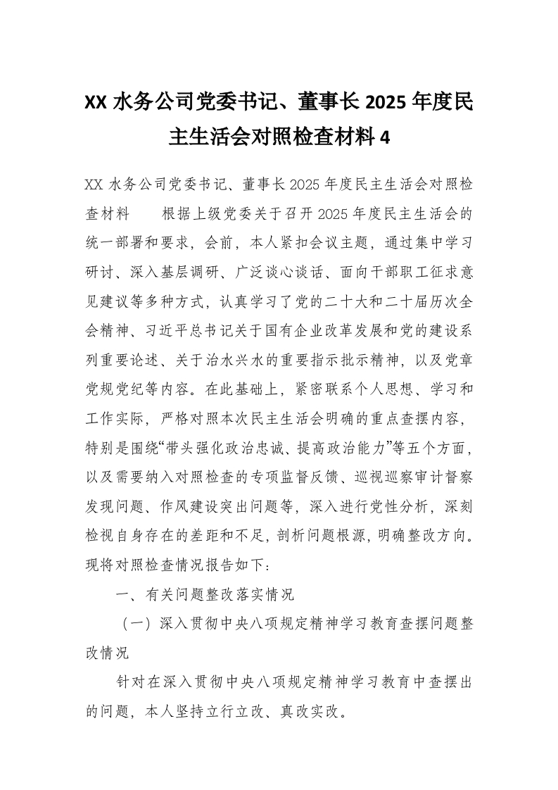 XX水务公司党委书记、董事长2025年度民主生活会对照检查材料4