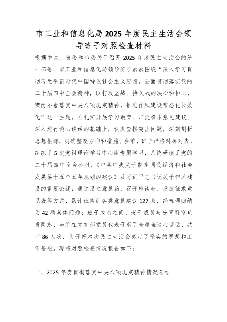市工业和信息化局2025年度民主生活会领导班子对照检查材料(1)