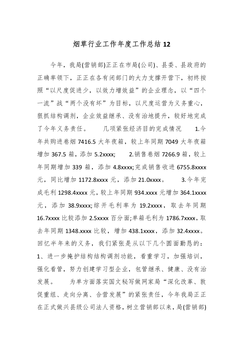 烟草行业工作年度工作总结12