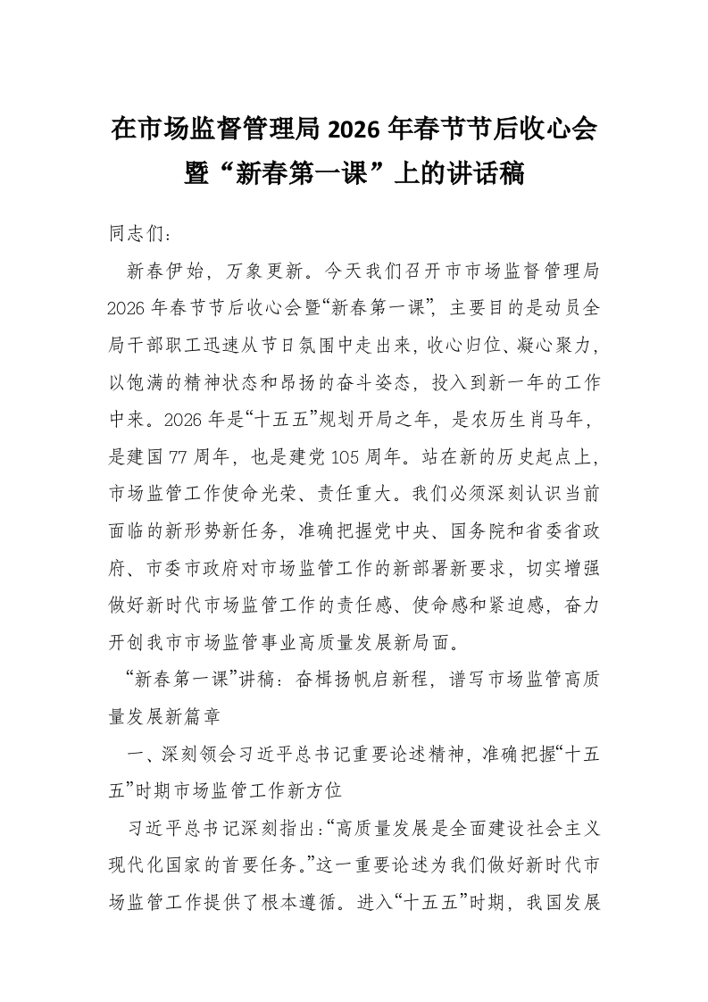 在市场监督管理局2026年春节节后收心会暨“新春第一课”上的讲话稿