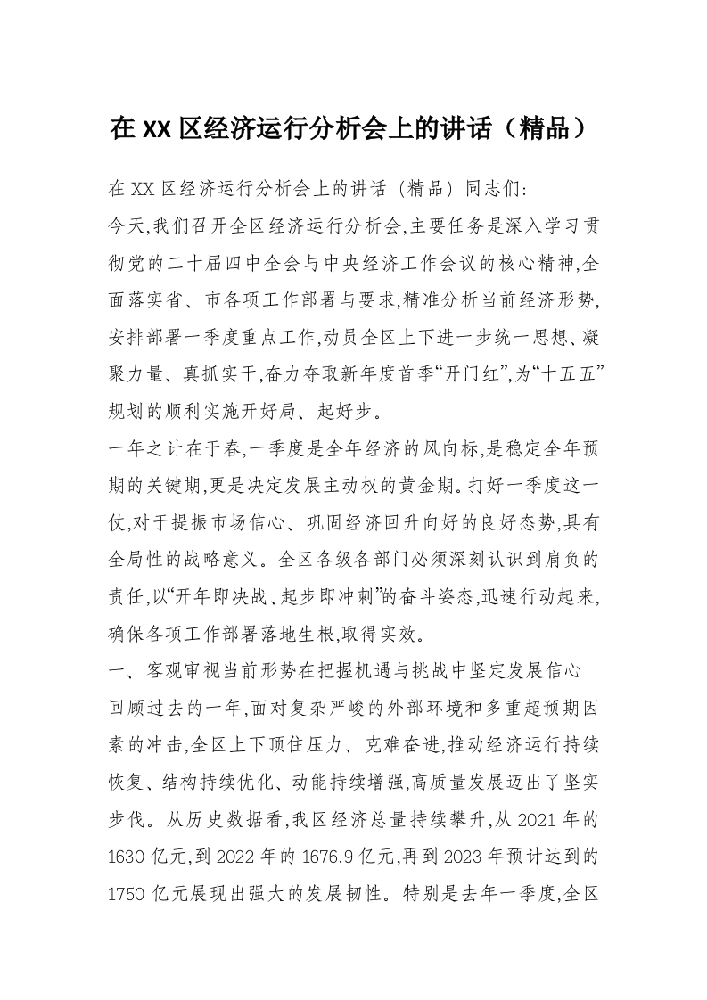 首页写作素材在XX区经济运行分析会上的讲话(精品)
