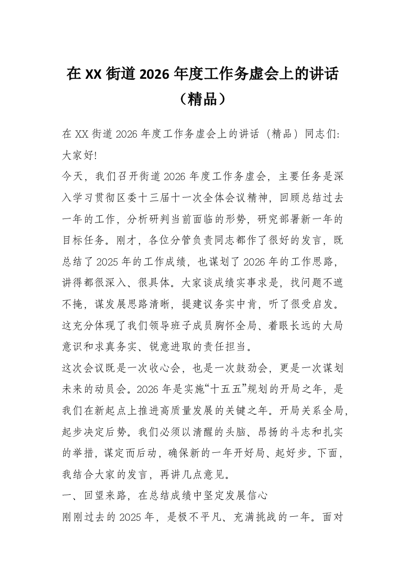在XX街道2026年度工作务虚会上的讲话(精品)