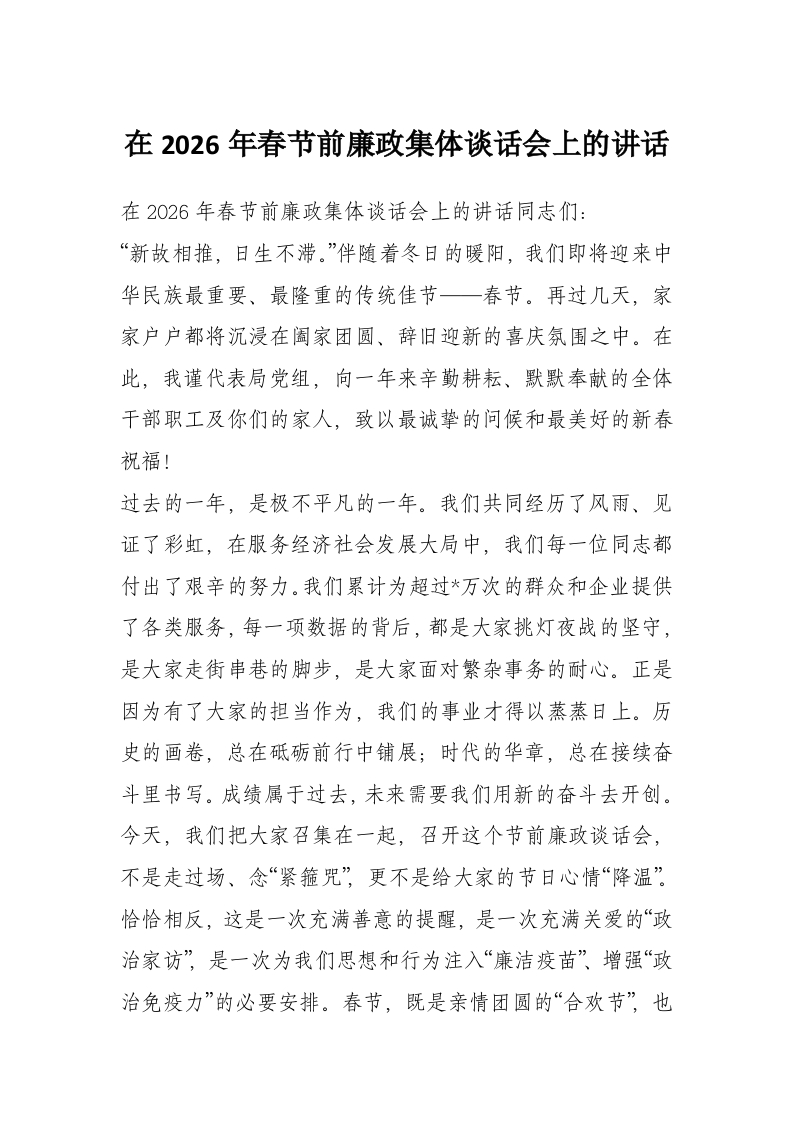 首页学习提升在2026年春节前廉政集体谈话会上的讲话