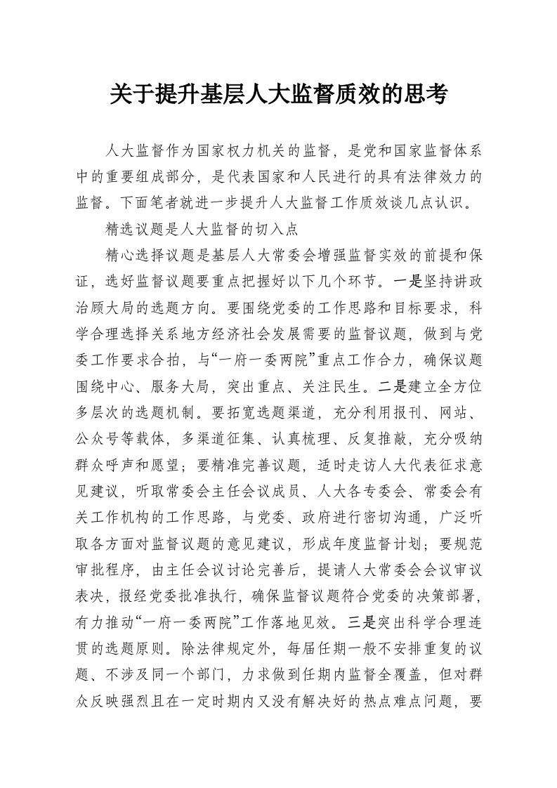 关于提升基层人大监督质效的思考