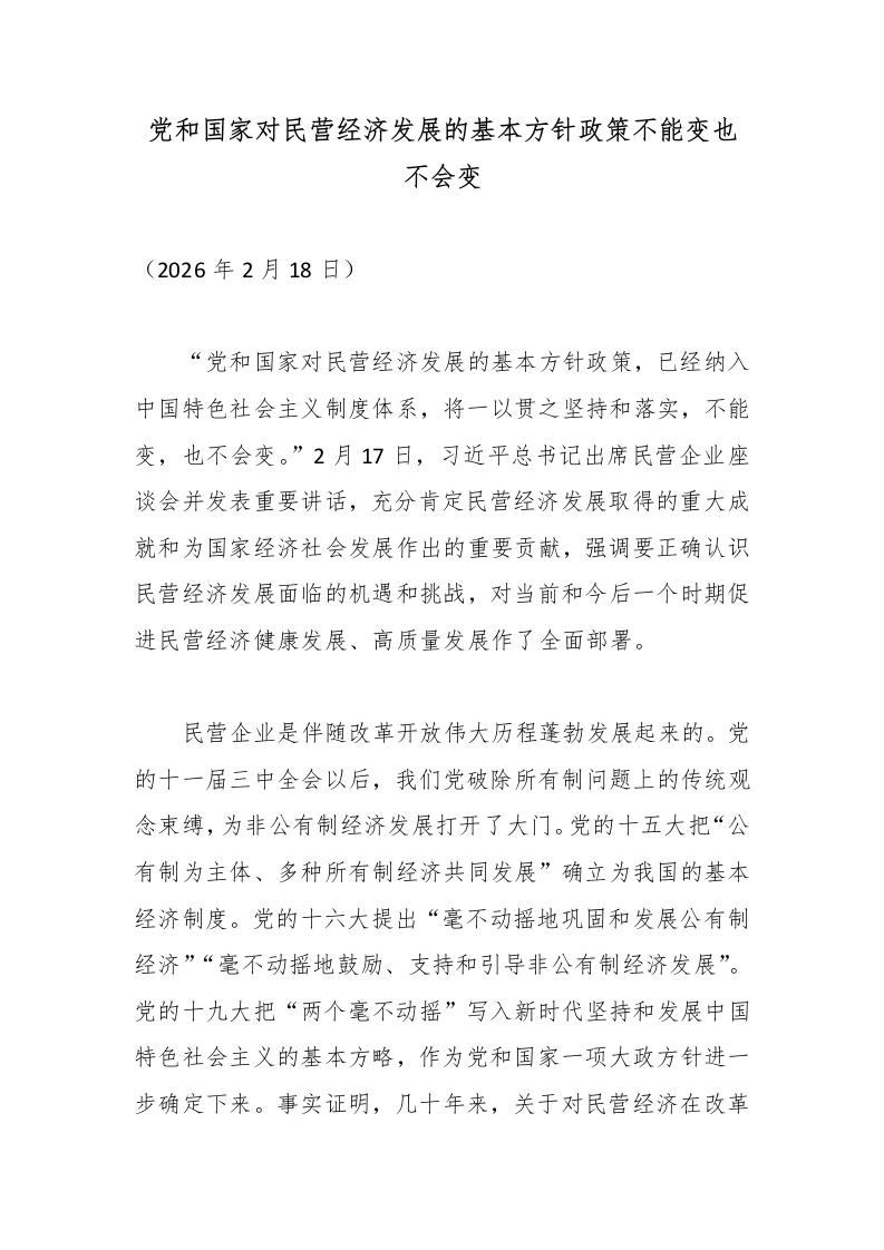 党和国家对民营经济发展的基本方针政策不能变也不会变_副本