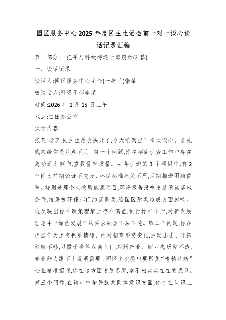 园区服务中心2025年度民主生活会前一对一谈心谈话记录汇编_副本