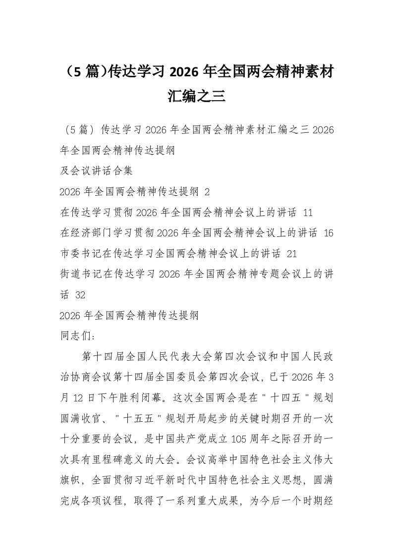 (5篇)传达学习2026年全国两会精神素材汇编之三