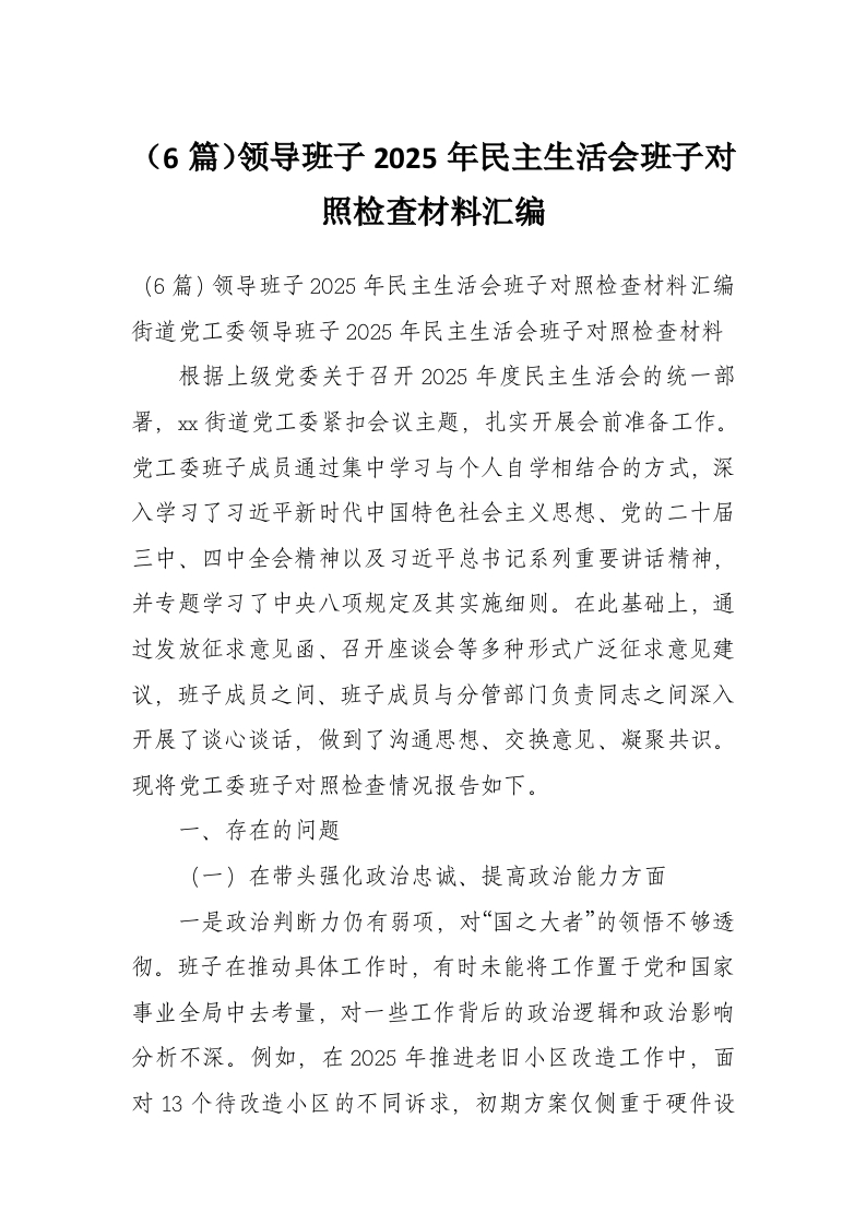(6篇)领导班子2025年民主生活会班子对照检查材料汇编