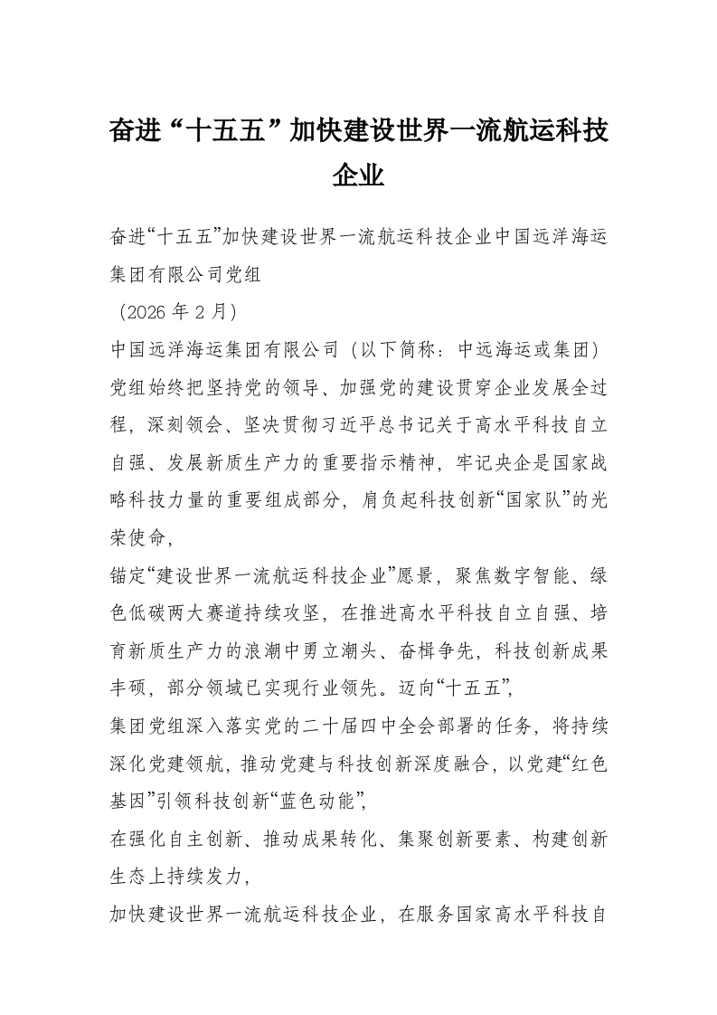 奋进“十五五”加快建设世界一流航运科技企业