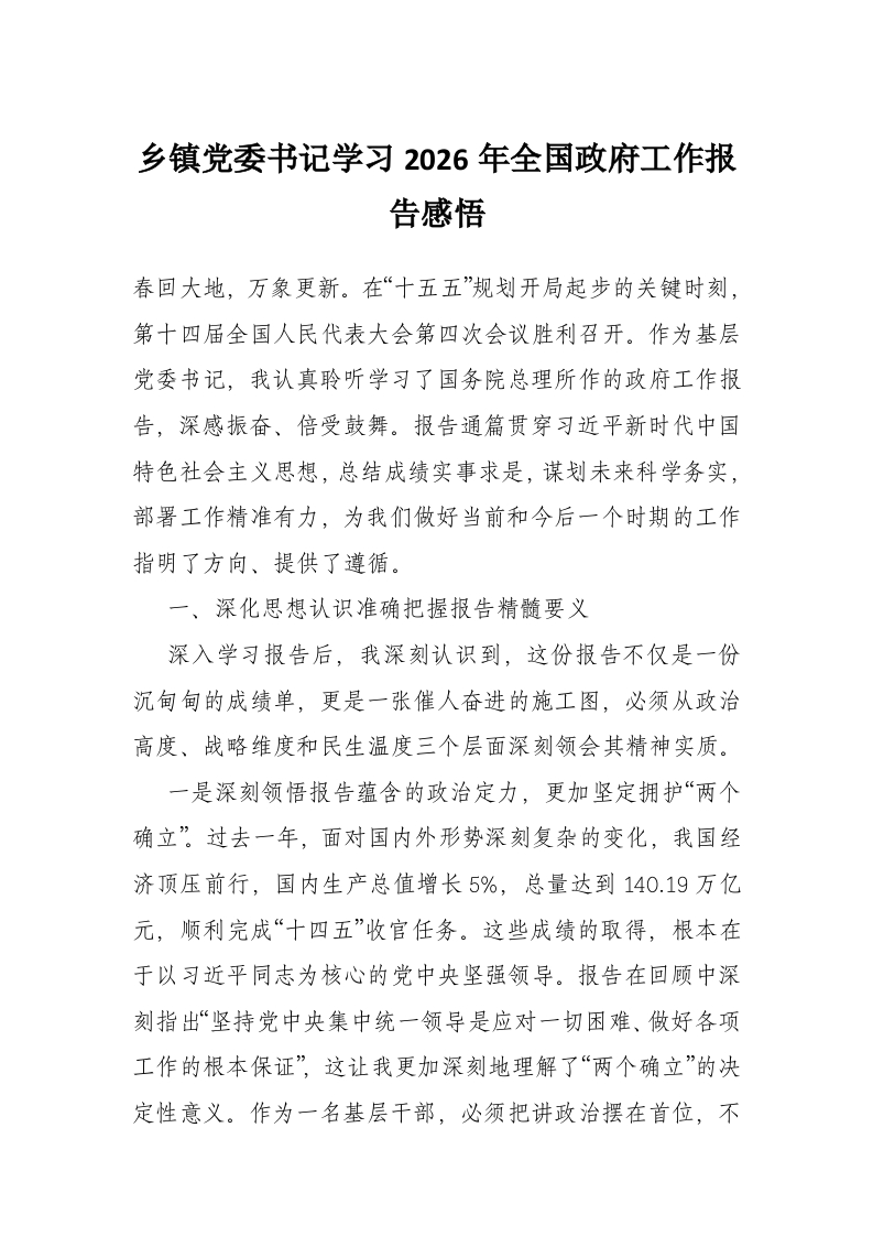 首页学习提升乡镇党委书记学习2026年全国***工作报告感悟