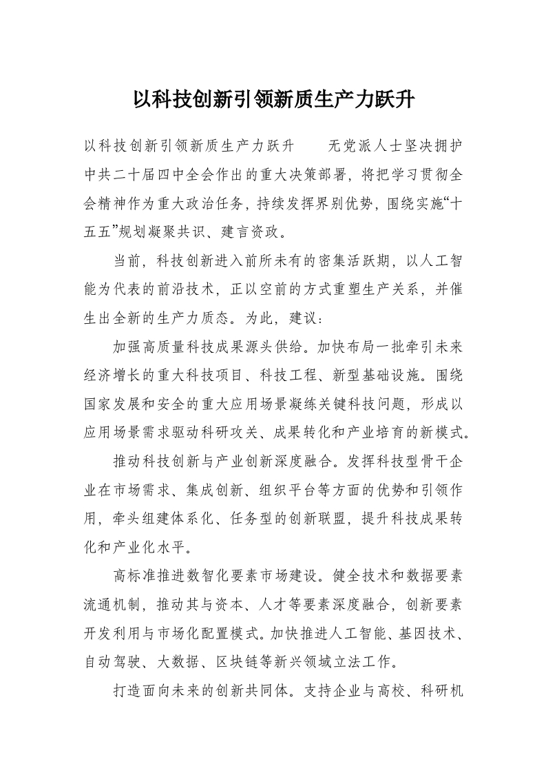 以科技创新引领新质生产力跃升