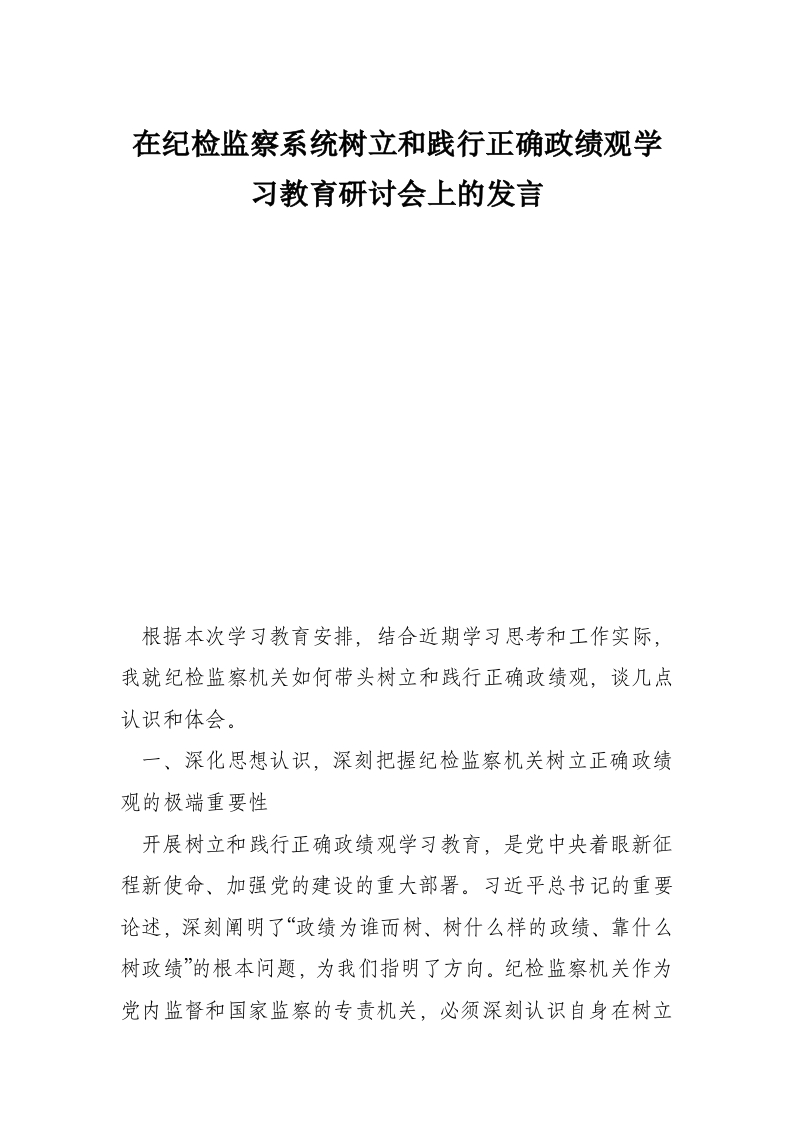 在纪检监察系统树立和践行正确政绩观学习教育研讨会上的发言