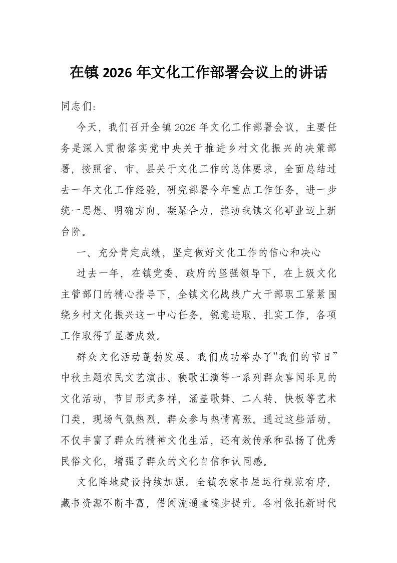 首页工作文档在镇2026年文化工作部署会议上的讲话