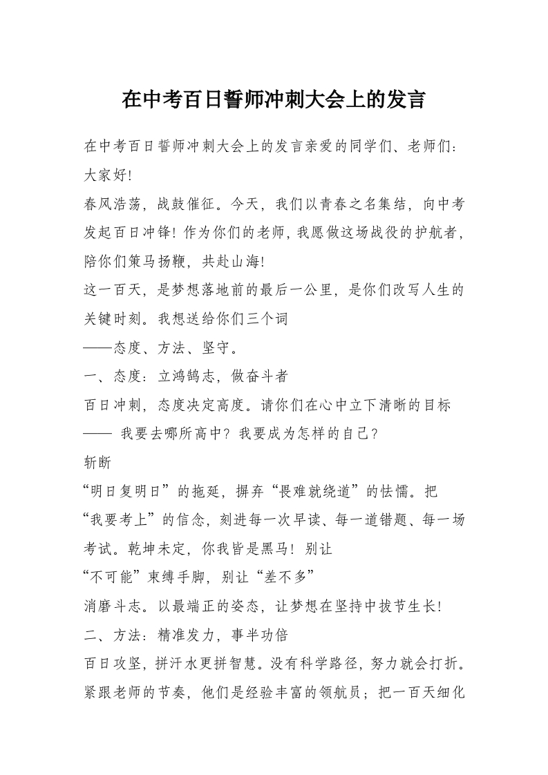 首页讲课讲稿在中考百日誓师冲刺大会上的发言
