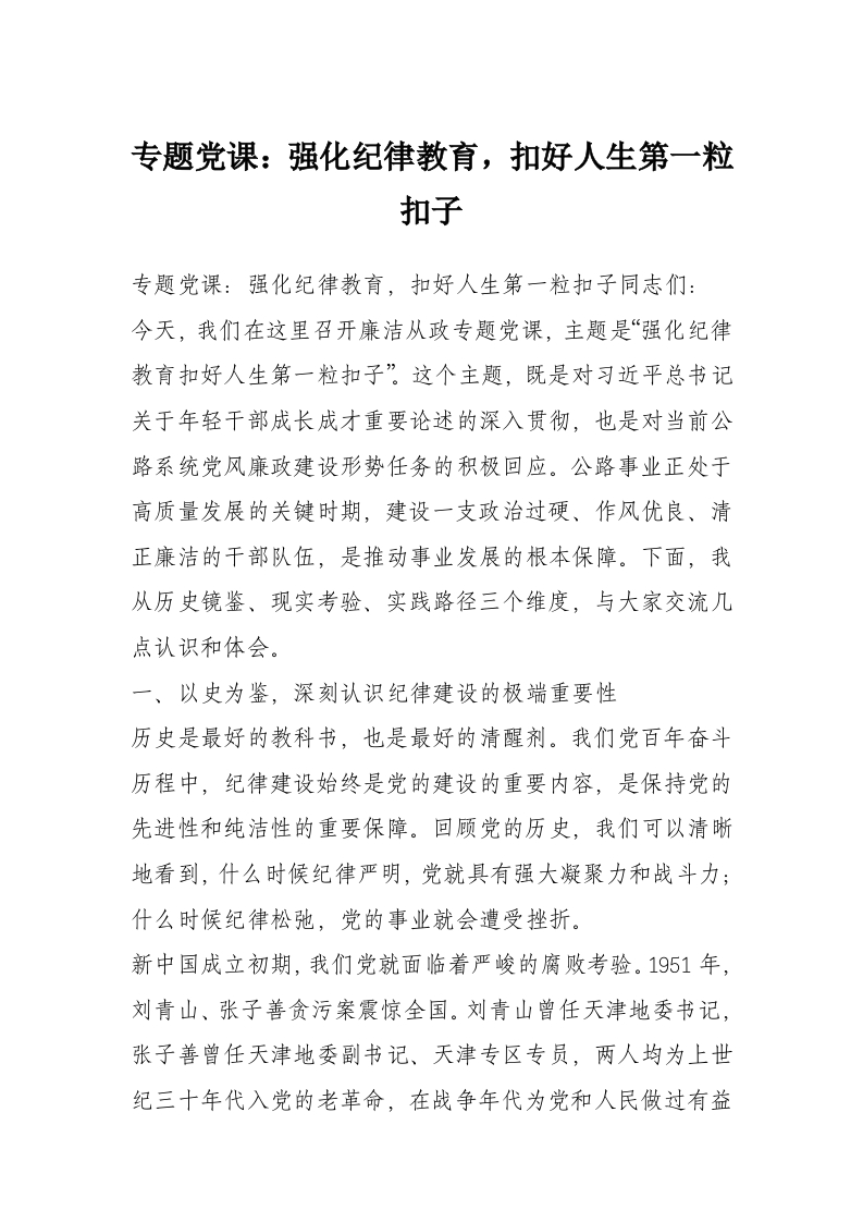 首页讲课讲稿专题党课:强化纪律教育,扣好人生第一粒扣子