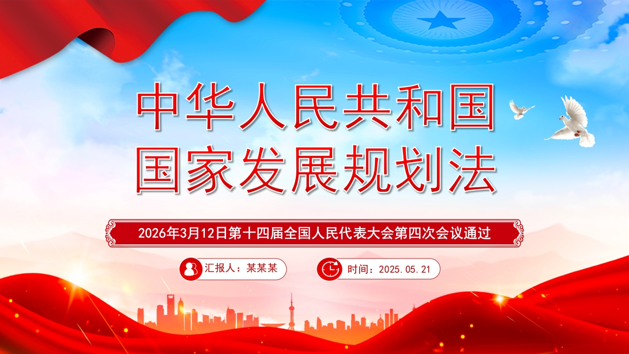 首页PPT模板简洁大气中华人民共和国国家发展规划法PPT课件