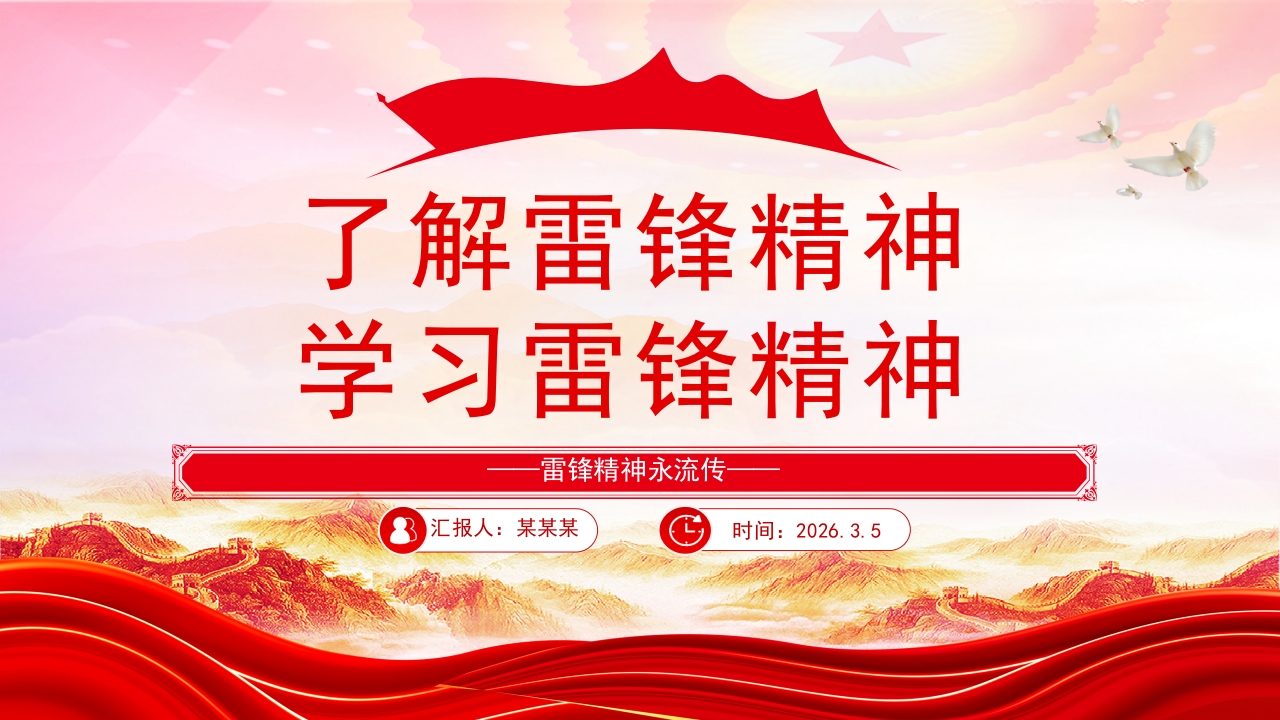 首页PPT模板红色精美了解雷锋精神学习雷锋精神PPT3.5学雷锋纪念日课件
