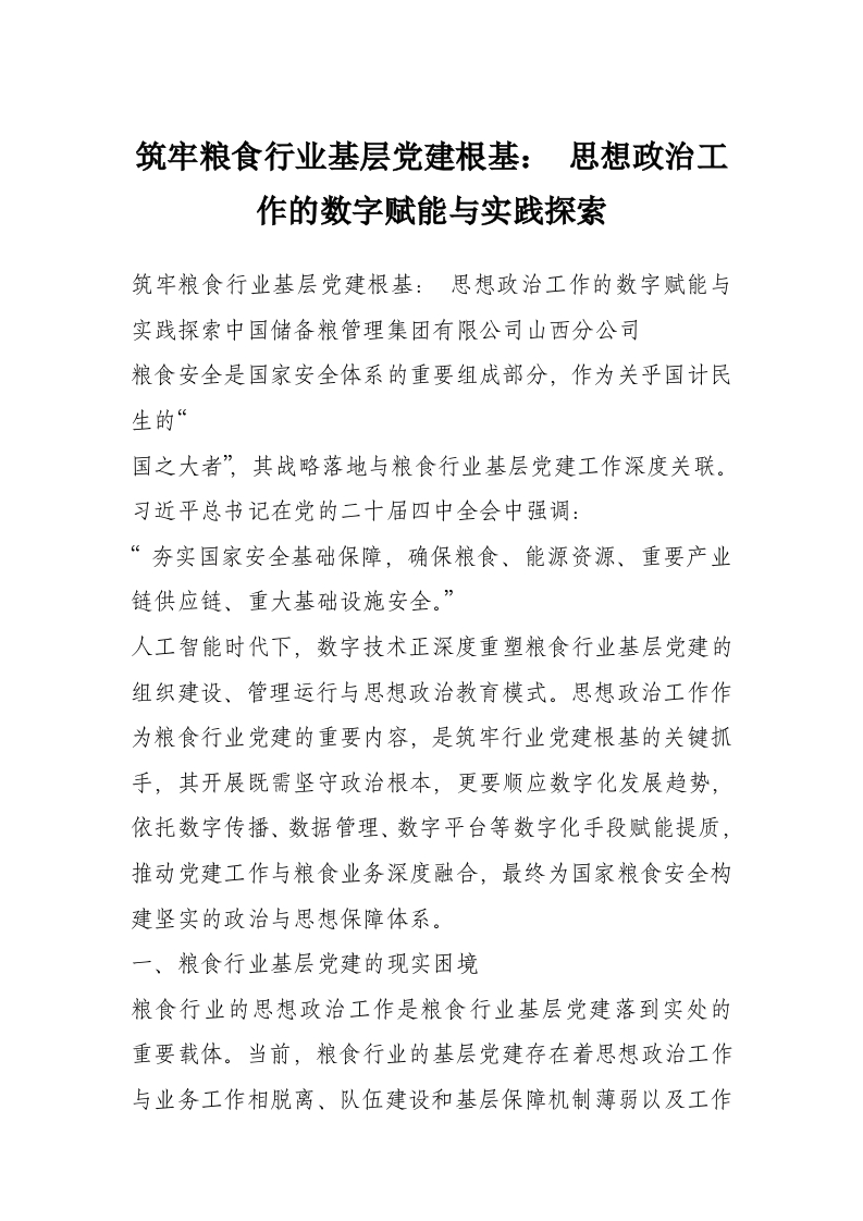 筑牢粮食行业基层党建根基: 思想政治工作的数字赋能与实践探索