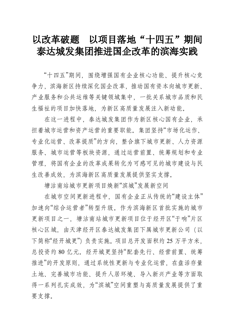 浠ユ敼闈╃牬棰樎犱互椤圭洰钀藉湴鈥滃崄鍥涗簲鈥濇湡闂存嘲杈惧煄鍙戦泦鍥㈡帹杩涘浗浼佹敼闈╃殑婊ㄦ捣瀹炶返