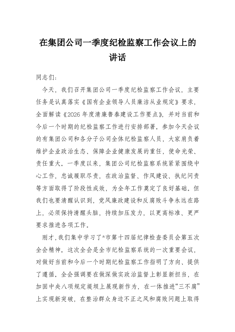 首页工作文档在集团公司一季度纪检监察工作会议上的讲话