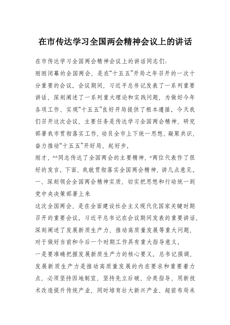 首页工作文档在市传达学习全国两会精神会议上的讲话