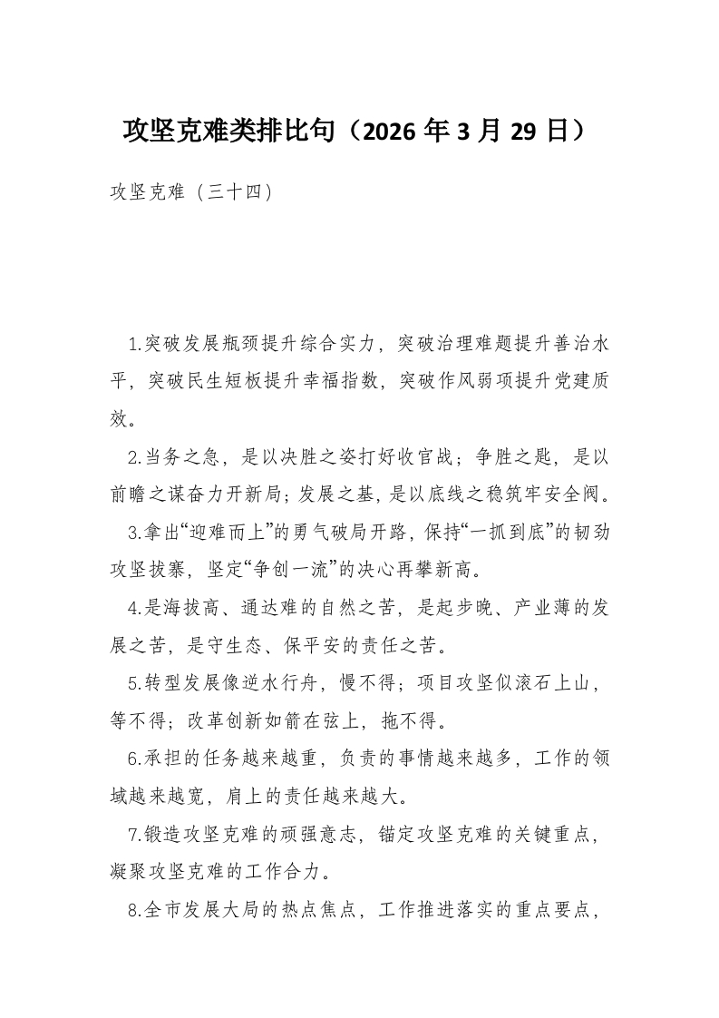 攻坚克难类排比句(2026年3月29日)