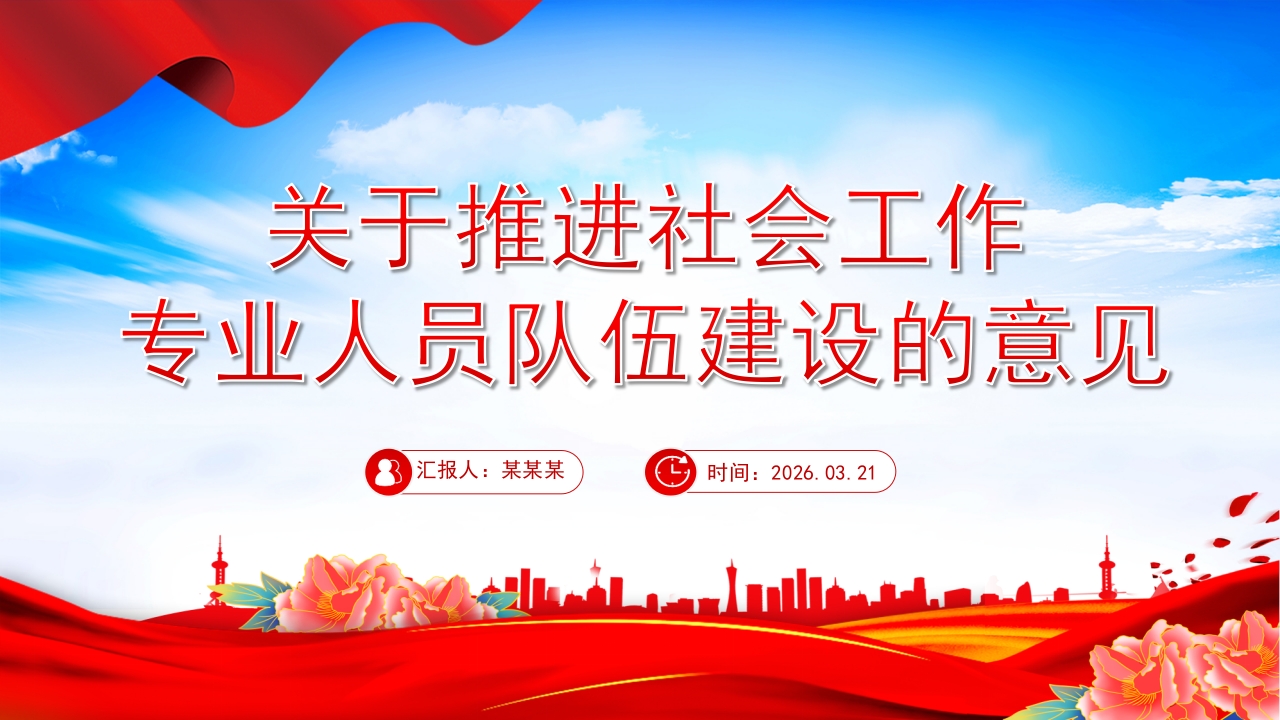 首页PPT模板红色简洁关于推进社会工作专业人员队伍建设的意见PPT课件
