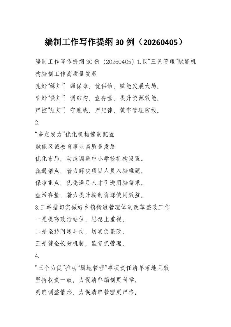 编制工作写作提纲30例(20260405)
