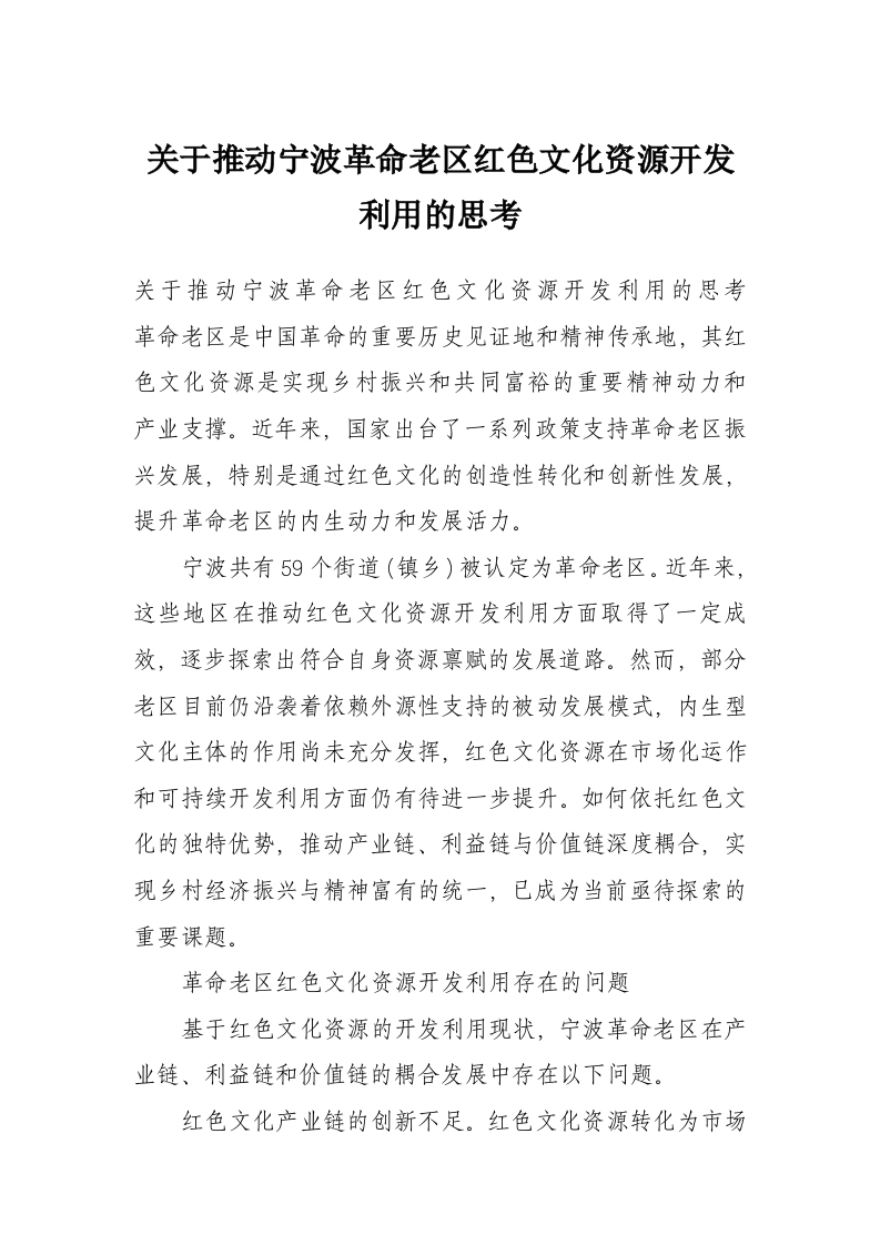 关于推动宁波革命老区红色文化资源开发利用的思考