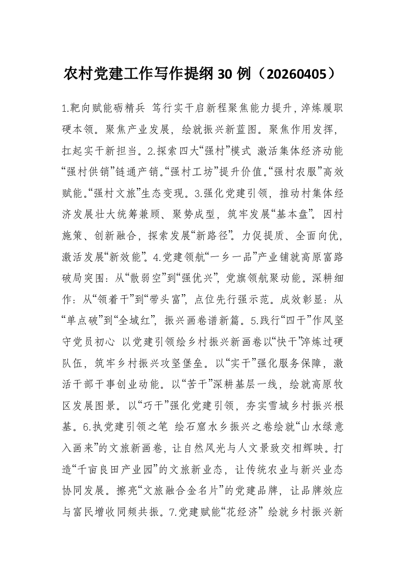 农村党建工作写作提纲30例(20260406)