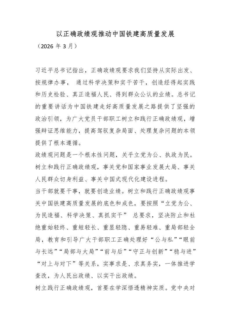 以正确政绩观推动中国铁建高质量发展