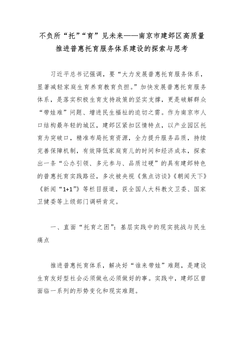 不负所“托”“育”见未来——南京市建邺区高质量推进普惠托育服务体系建设的探索与思考