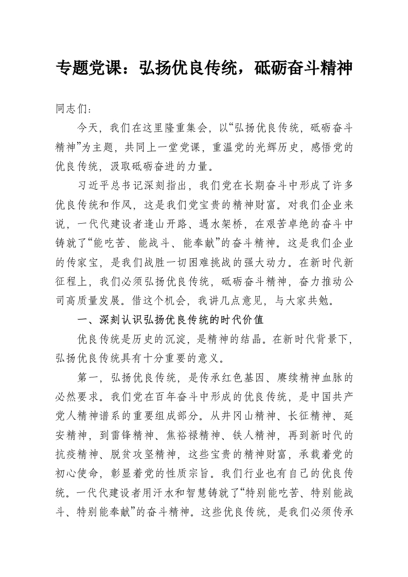 专题党课:弘扬优良传统,砥砺奋斗精神