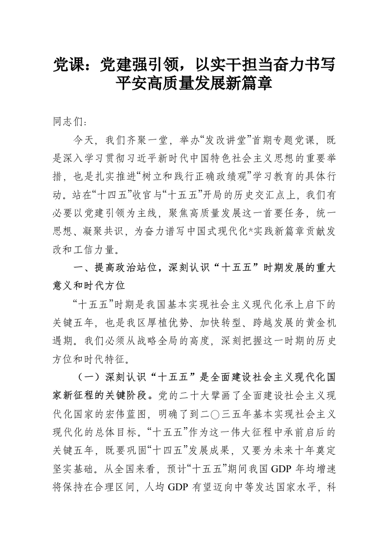 党课:党建强引领,以实干担当奋力书写平安高质量发展新篇章