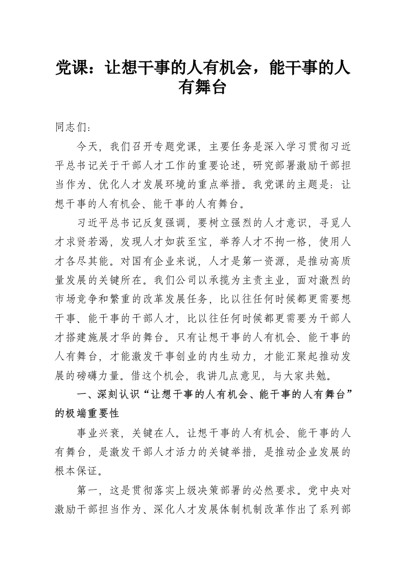 首页讲课讲稿党课:让想干事的人有机会,能干事的人有舞台