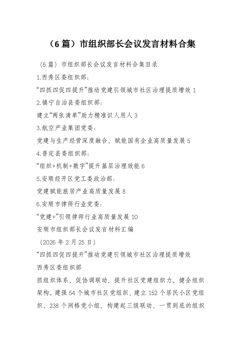 - (7篇)奈曼旗组织工作会议交流发言材料材料汇编
