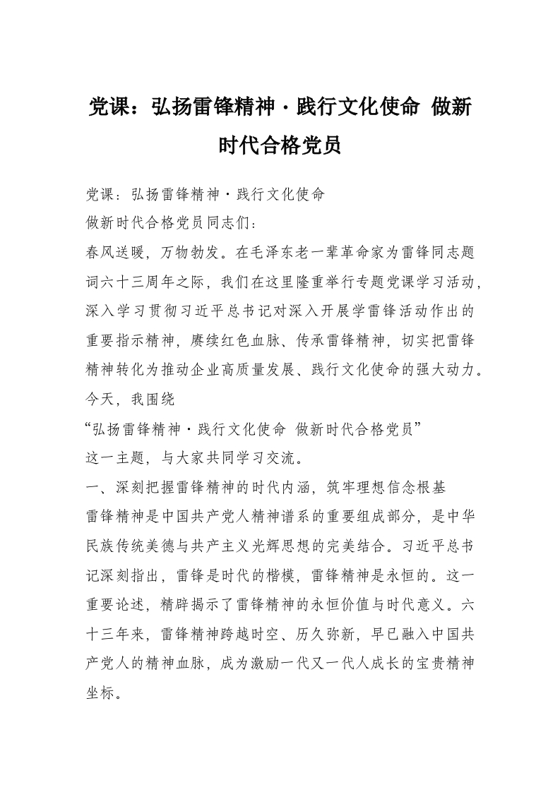 - 在 XX 县党办系统年轻干部培训班上的党课