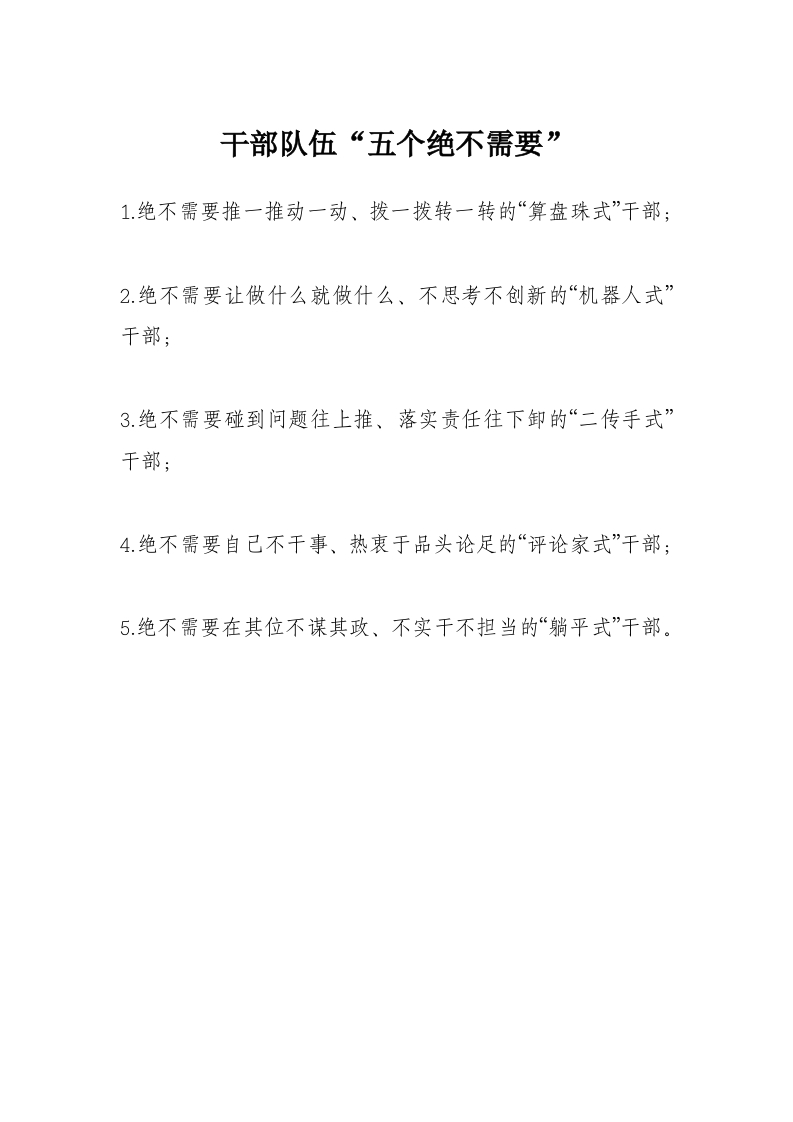 干部队伍“五个绝不需要”