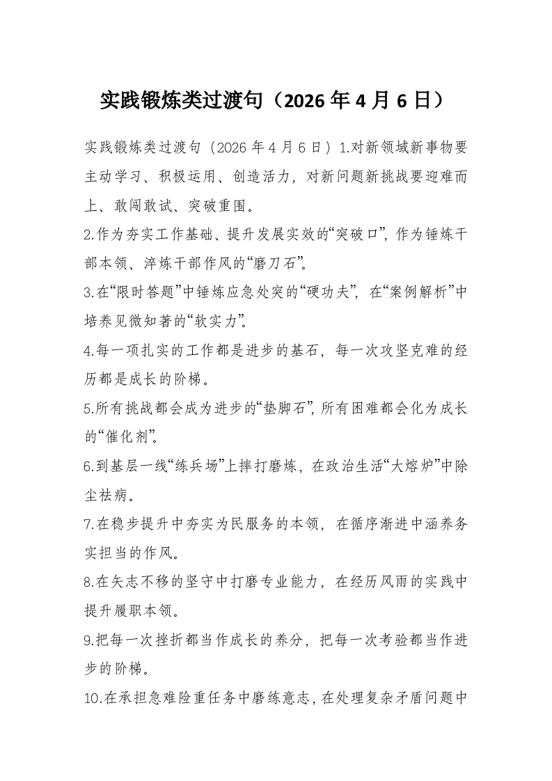 实践锻炼类过渡句(2026年4月6日)