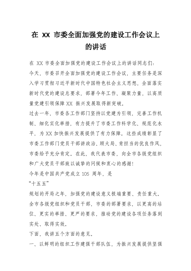 - 在 XX 市委党建引领基层治理协调机制会议上的讲话